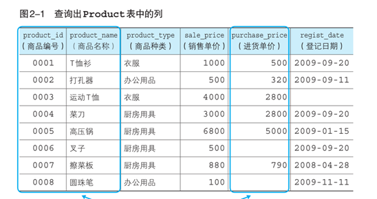 以《sql基础教程》中的图2-1为例: