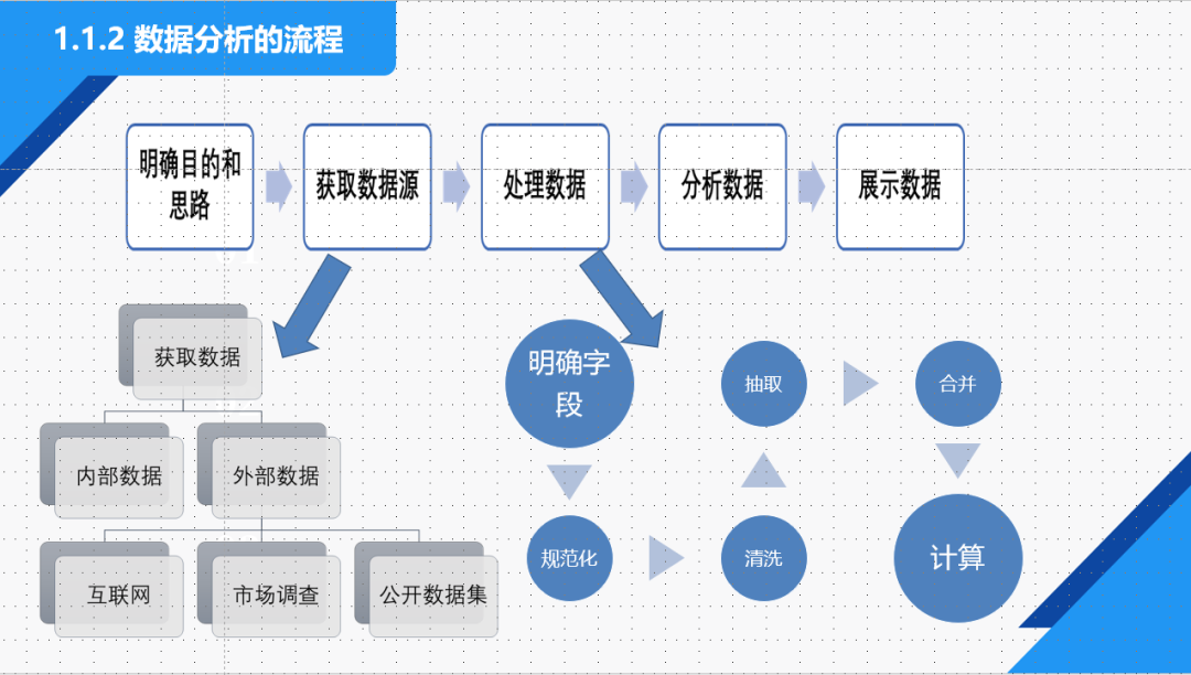 这一节还简单说了下数据分析的流程,获取数据的方法以及处理数据的流程。