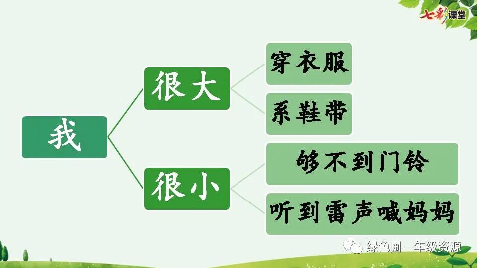 当“我”自己的事情自己能解决的时候就觉得自己很大;当“我”还需要父母的帮助,还依赖他们的时候会觉得自己很小。