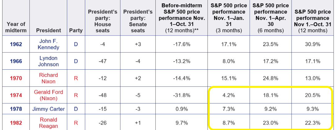 但从标普500指数在中期选举后的历史表现来看,正如上文所强调的,可能即将柳暗花明。