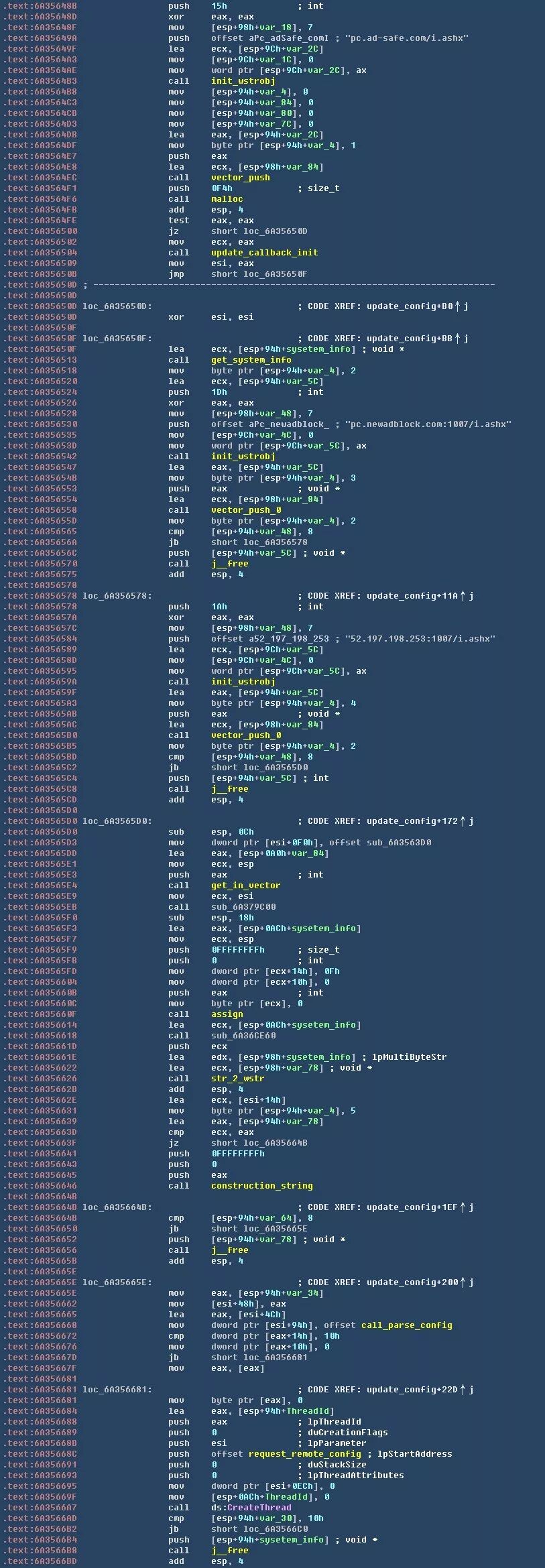 流量劫持策略不但会被5.3版本的ADSafe直接释放,还可以进行云控更新,就在我们分析的同时,劫持策略还在不断更新,所以下文所提到的劫持策略均以我们获取到的最后一个版本为准。