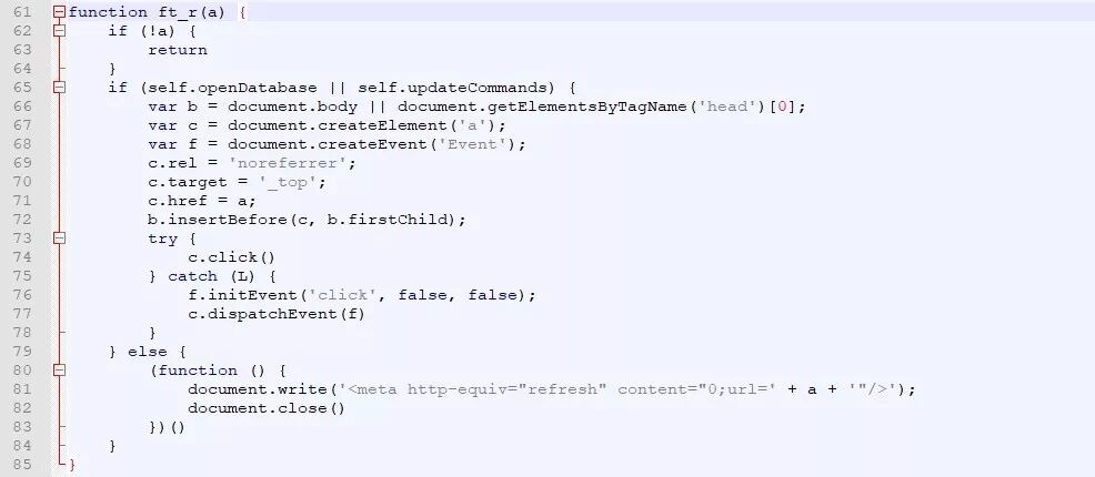 在获取到上述劫持链接后,会调用ft_r函数在当前页面中插入刷新标签进行跳转。如下图所示: