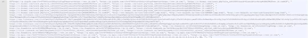 _fun_17函数会从预先准备的劫持数据中解密出一组劫持链接,且每个链接都对应一个劫持概率,劫持概率以比例的形式被依次存放在劫持链接数组后面。解密出的劫持数据,如下图所示: