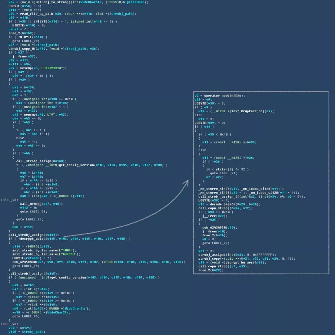 在我们对ADSafe 5.3.117.9800版本(安装包来源为某下载站)进行分析后发现,该版本的ADSafe也具有相同的劫持行为。除此之外,该版本ADSafe和清网卫士的功能组件中大部分功能代码基本相同,甚至有部分用于流量劫持的数据文件SHA1也完全相同。以HTTP代理主模块为例进行代码比对,ADSafe.exe(ADSafe)和Adoff.exe(清网卫士)代码对比,如下图所示: