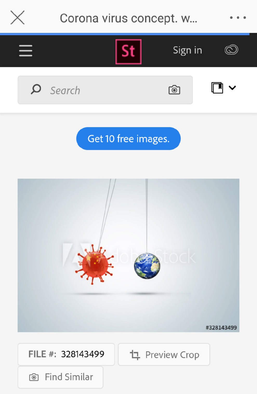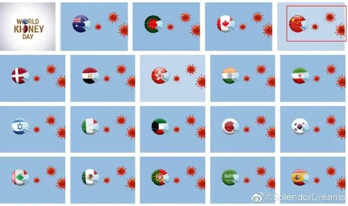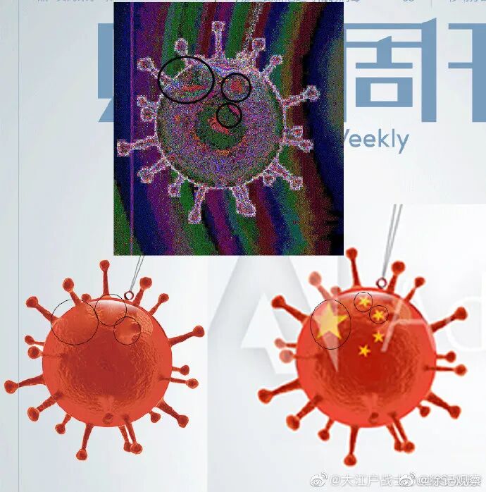 唯一的区别在于,设计师在使用图片的时候,把新冠病毒上的五星红旗给抹掉了。