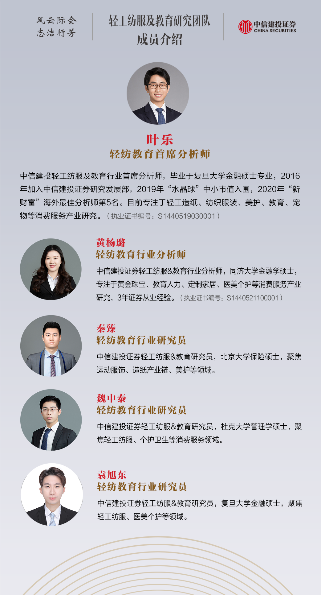 附轻工纺服及教育首席叶乐团队近一年研报合集: