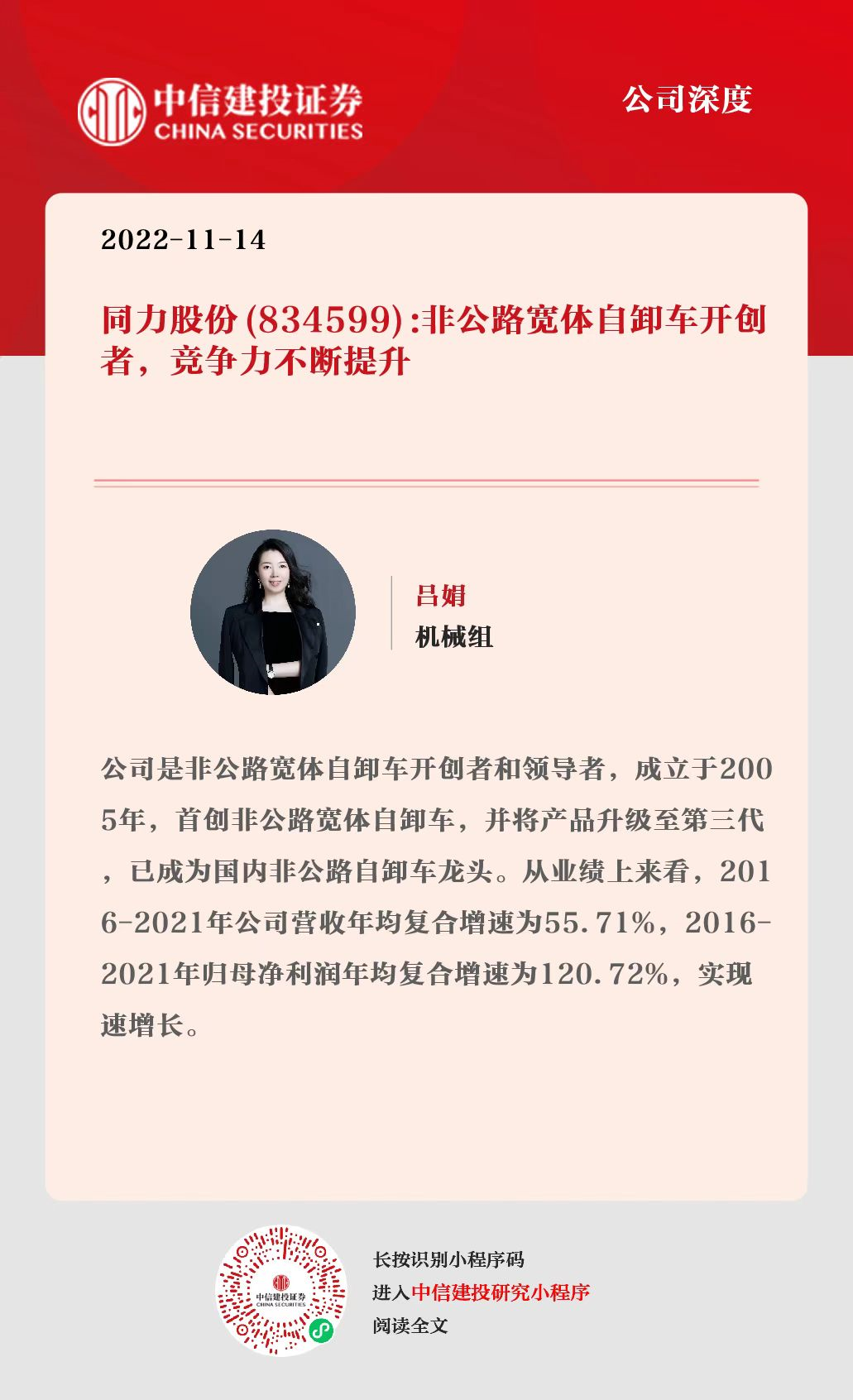 同力股份(834599):非公路宽体自卸车开创者,竞争力不断提升