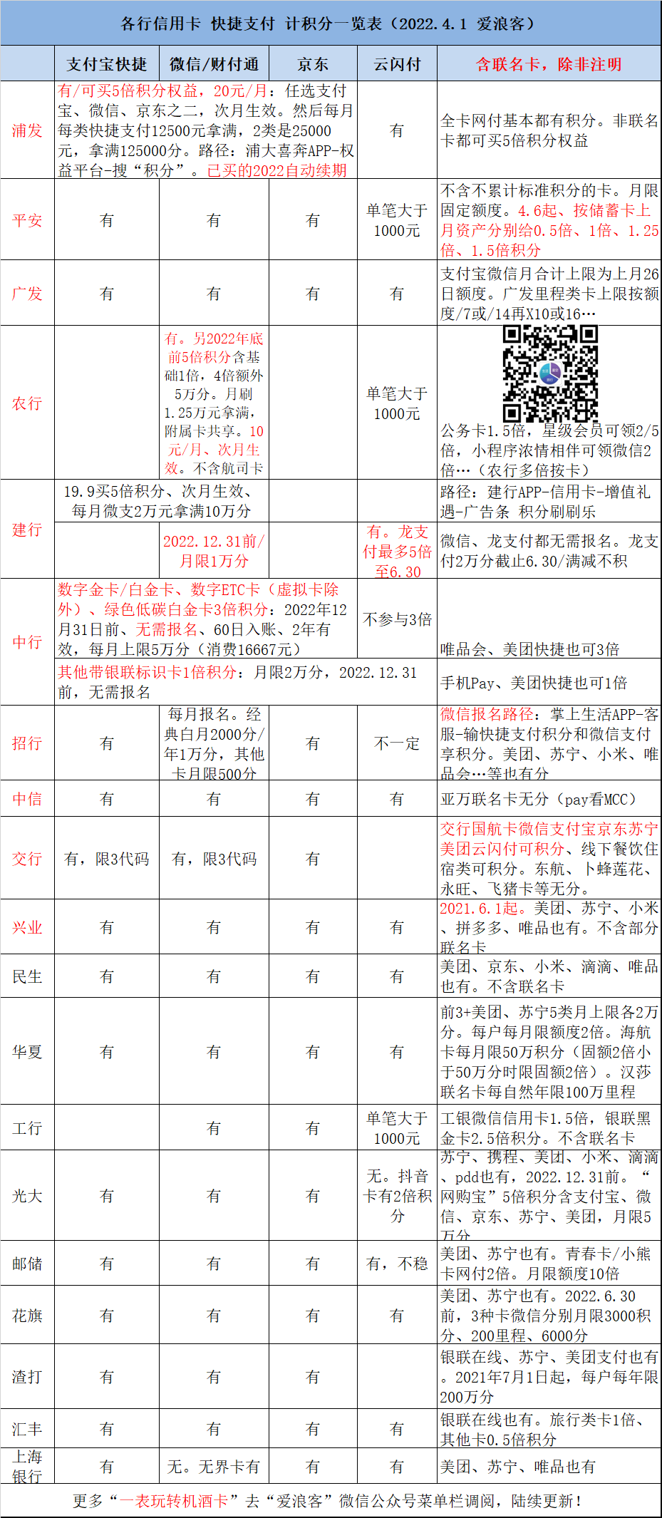 然后就是选对信用卡。当然首选多倍积分,有消费活动的(比如浦发超白、AE白)。附表:
