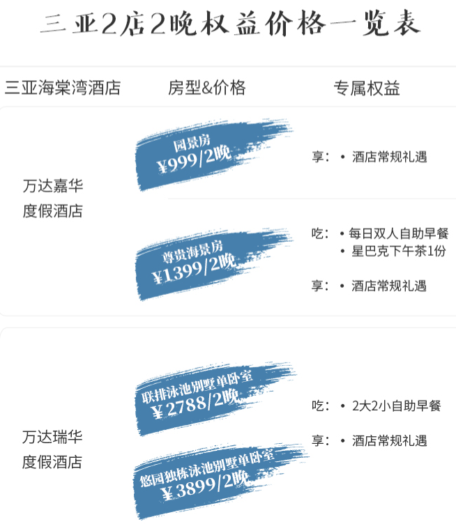 三亚海棠湾万达嘉华/瑞华度假酒店2晚连住特惠套餐