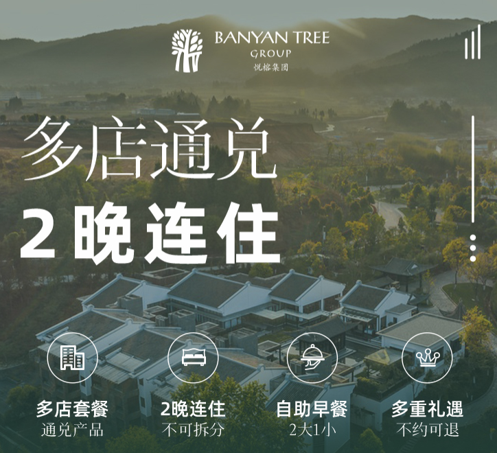 2999元两晚:天津海河悦榕庄、九寨沟悦榕庄、丽江悦榕庄、黄山悦榕庄、安吉悦榕庄。