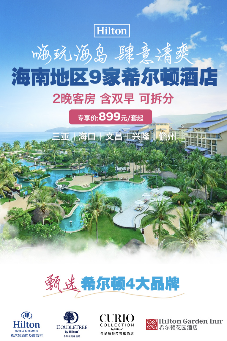 海南澄迈富力希尔顿逸林度假酒店(899元两晚)