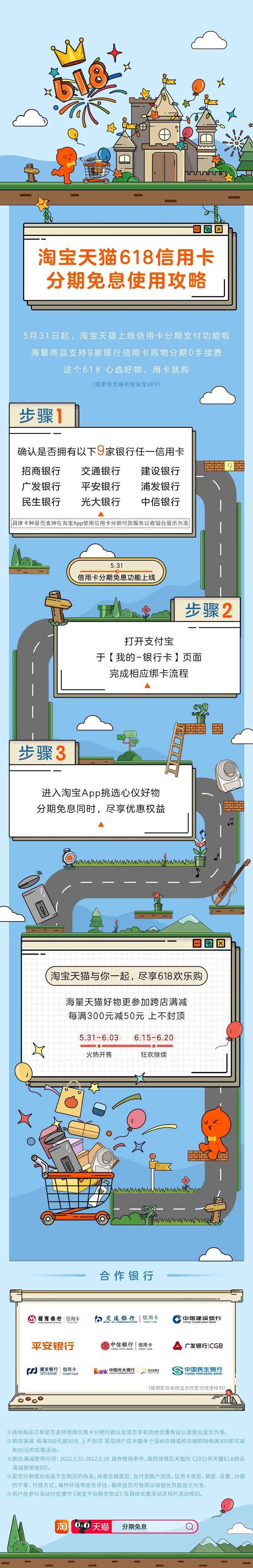 今年淘系除了超给力的天猫跨店满300-50、淘宝跨店满200-20,更是直接在付款页面提供9家银行分期免息(最高24期)!