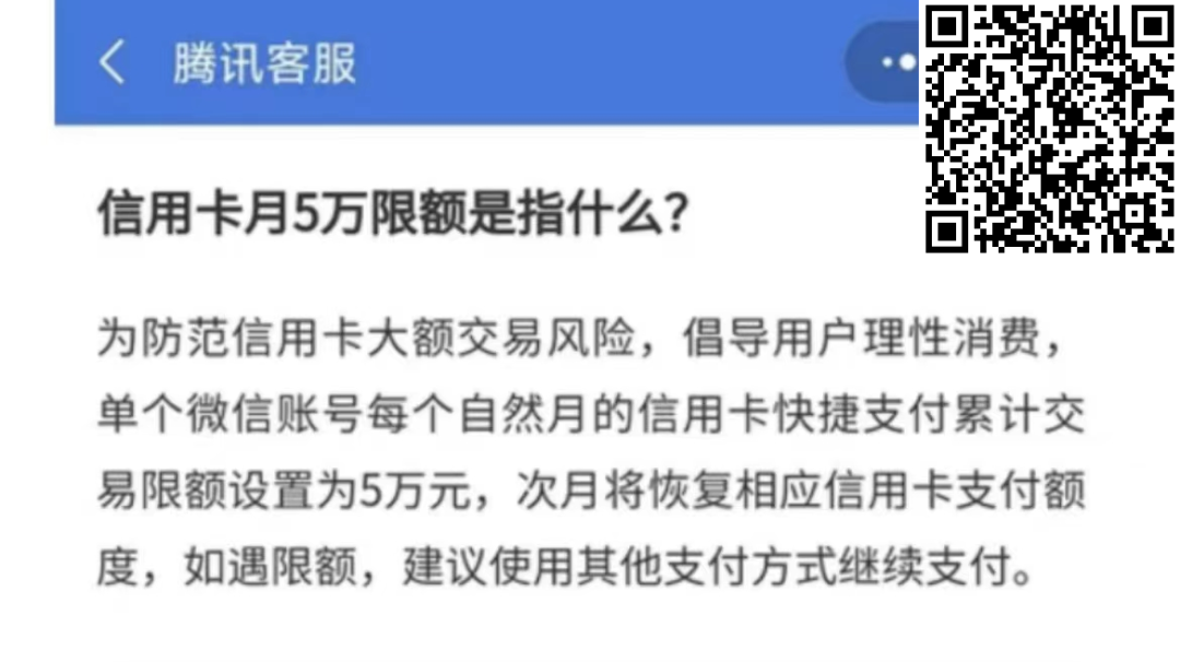 5月底的事情了,单个微信限信用卡消费每月5万,当时群里发了: