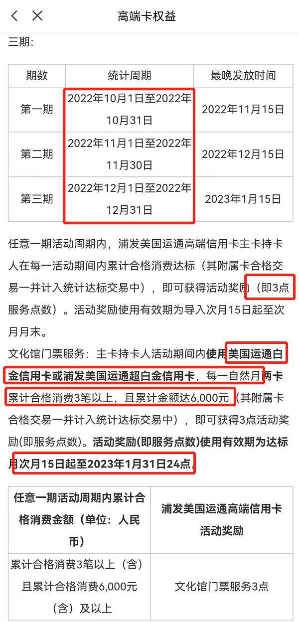 很多朋友在问四季度浦发刷什么?目前就是2卡文博每月6000、5倍积分每月2个12500、每月18888元的靠浦飞、超白每月18888元的观影: