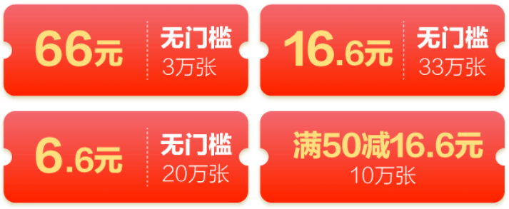 其中,满600元分12期立减10.24元优惠券1万份;满6600元分12期立减102.4元优惠券8000份;满66000元分12期立减1024元优惠券2000份。