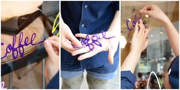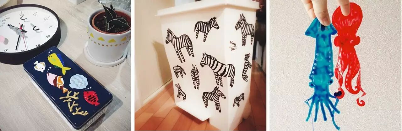 △ Masking Color 从容器中挤出后可直接在玻璃、金属等光滑的平面上作画。干燥后,也可将作成的图案从平面上剥除。之后还可重复使用。图片来源 | AXIS Web Magazine