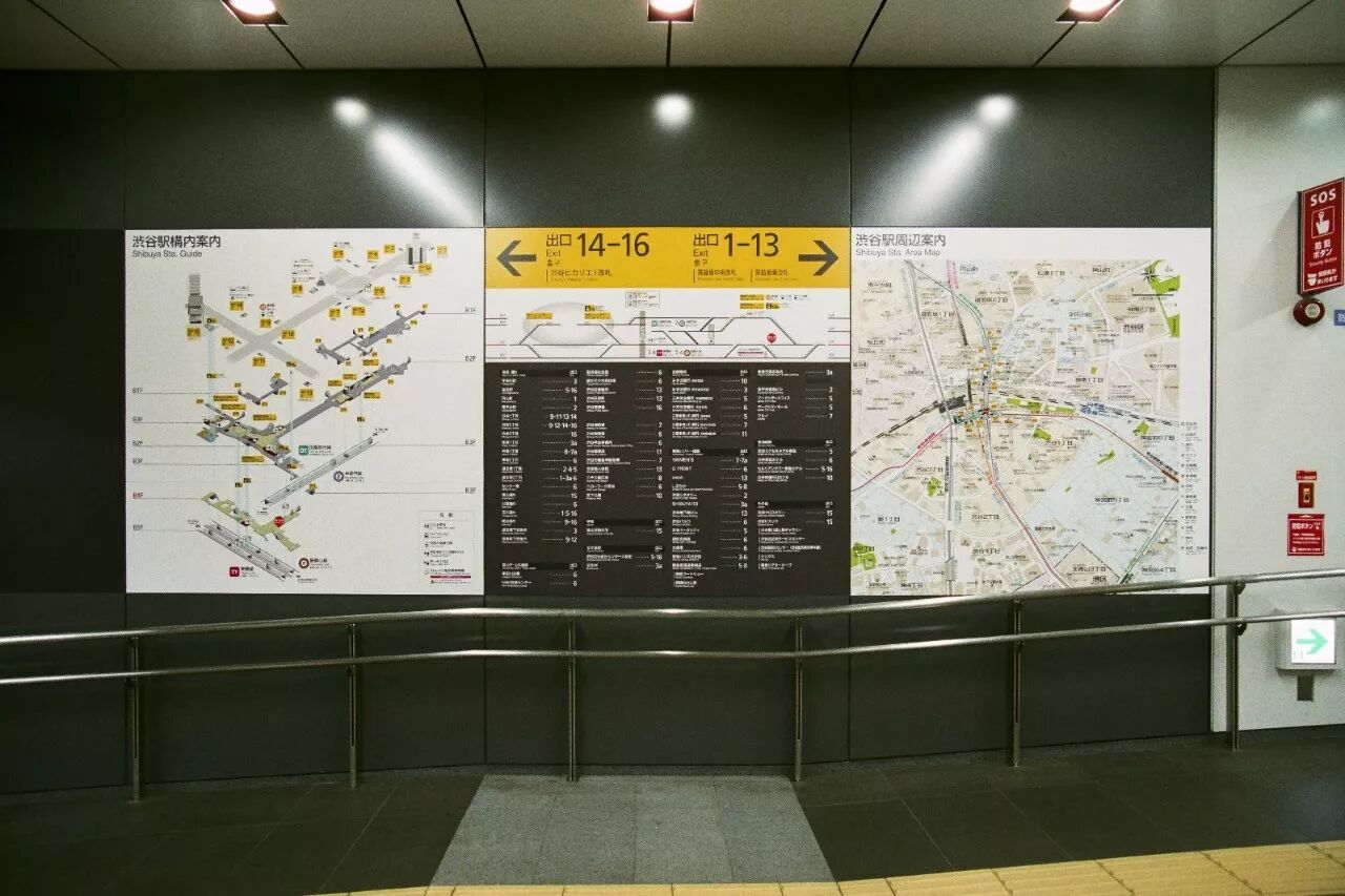 △ 涩谷站的指示牌。周边的商业设施也是重要的引导信息。 图片来源 | Fabian Ong