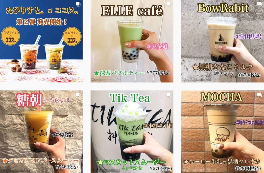 那两位因为珍珠奶茶上电视的女大学生,就建立了一个名叫“tapitapimainichi”(大意为“每天都是珍珠奶茶”)的 Instagram 账号,并自称 tapilist(珍珠奶茶专家),粉丝超过 13 万人。