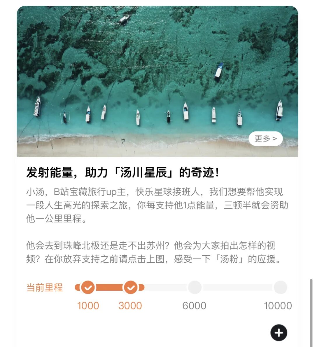 返航计划还将 KOL 与用户关联起来。三顿半用一种特别的方式去支援小汤——一名热衷于火车旅行的 B 站 up 主的旅行计划。用户每支持 1 个空罐给小汤,三顿半就会资助他一公里旅程的旅费。目前,获得了超过 3000 个空罐的小汤已踏上了去往西藏的旅程。”我们想让三顿半的用户跟着小汤的旅行去经历一些有趣的事情。”段楚说。