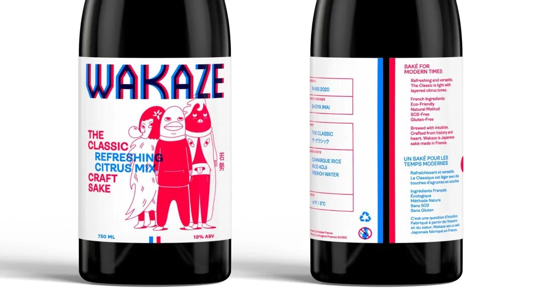 作为一个 2016 年新创立的日本清酒品牌,Wakaze 将日本酿酒工艺和法国原材料结合,试图开拓海外市场。它找到伦敦设计公司 Our Friends in London 为其设计了一套视觉标准,完全颠覆了大众对传统日本清酒的认知。