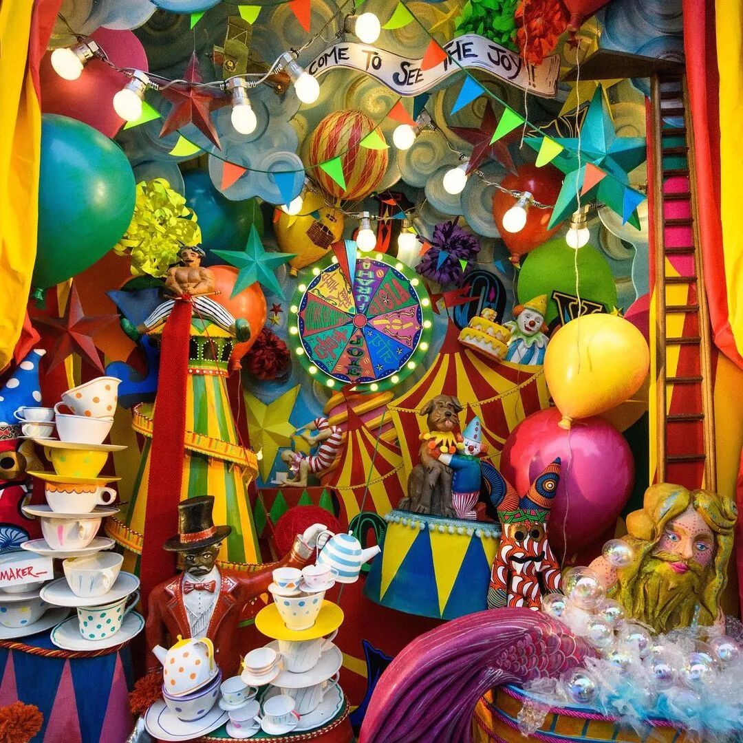虽然饱受疫情打击,Fortnum & Mason 在防疫封锁制度下仍然坚持更新其主题橱窗设计。考虑到疫情之下,自由创意工作者缺乏工作机会的现状,Fortnum & Mason 新一季的橱窗从“对抗疫情,传递快乐”出发,公开招募面向剧场的相关创意工作者,最终甄选出6位创意人,共同创造出色彩明亮欢愉的橱窗展示设计。