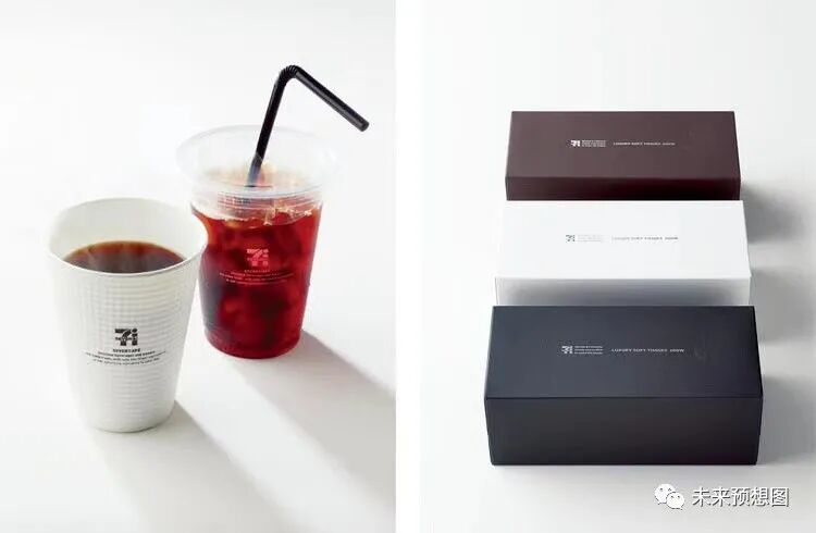 佐藤可士和还参与了 SEVEN CAF 项目,与 7-PREMIUM 一样,他也为这个项目设计了一套可以融入办公环境的视觉系统。在口味上,7-ELEVEn 花了两年时间开发出 100 日元级别的咖啡,在市场上率先推出了便利店手冲咖啡的概念。