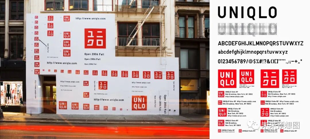2006 年,为筹备纽约旗舰店开张,优衣库母公司迅销集团 CEO 柳井正邀请佐藤可士和参与优衣库的全球化战略,担任筹备纽约旗舰店的创意指导。佐藤可士和为优衣库设计了日语片假名“ユニクロ”与英文字母“Uniqlo”两个 logo,以强化品牌“来自日本”的概念。纽约旗舰店自从装修施工开始就在外墙不断强化推出这个红色 logo,创造出“无机质、波普风、恰似如今的日本”的视觉印象。这套视觉语言也作为优衣库全球化战略的一部分,一直沿用至今。