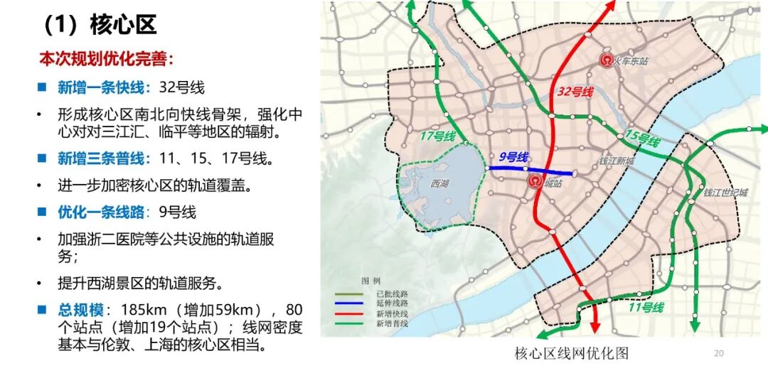 从2号线良渚站,沿古墩路-前程路延伸至瓶窑镇,长7公里,设站3座,实现了良渚文化村、瓶窑镇的轨道服务。西延:从4号线紫金港站,向西北延伸至西湖大学,长4.0公里,设站3座,加强西湖大学、紫金港科技城等地区的轨道服务。从5号线老余杭站,向西延伸至杭临线南峰村站,长7公里,设站3座,加强南湖新城的轨道服务,支持之江实验室、达摩院等重点项目发展。