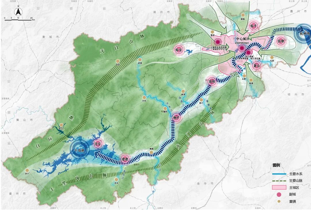 此外,杭州还新增3个副城:桐庐、建德、淳安,从而形成一主、三中心、八副的格局: