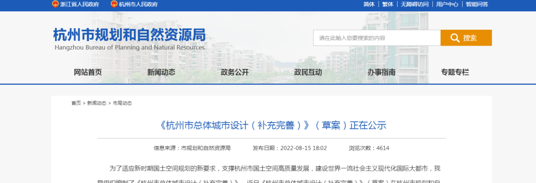 昨天,杭州市规划和自然资源局官网发布了题为“《杭州市总体城市设计(补充完善)》(草案)”的头条文章。从文章相关规划图中可以看到,官方继此前公布杭州“新主城区”范围后,再次提到“新主城区”概念,杭州城市新格局即将诞生!(△截图/杭州市规划与自然资源局)