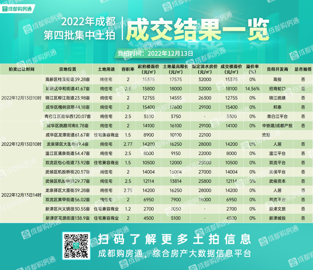 就在刚刚,成都2022年第四轮土拍收官,本次土拍也是今年的最后一拍。
