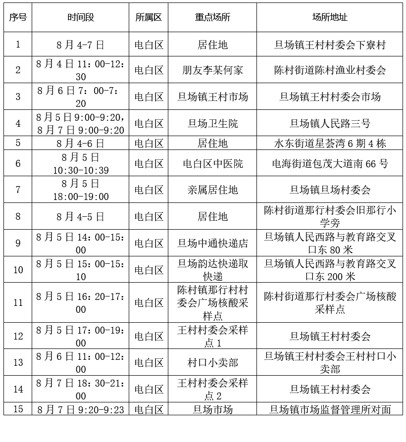 上述临时管控措施自2022年8月9日0时开始实施,后续疫情防控措施将根据形势动态调整。请广大市民时刻增强防范意识,自觉遵守疫情防控相关规定,如遇困难,请及时拨打“12345”政务服务热线,也可登陆“湛江云媒”app“云媒帮”或“视听湛江”app“马上办”栏目进行留言。☑ 电白区新增6例阳性个案