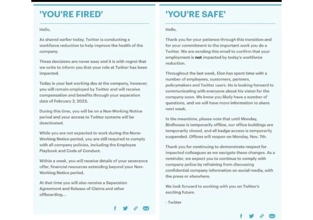 并且,Twitter 也开始了和裁员受影响者之间关于遣散待遇的谈判。