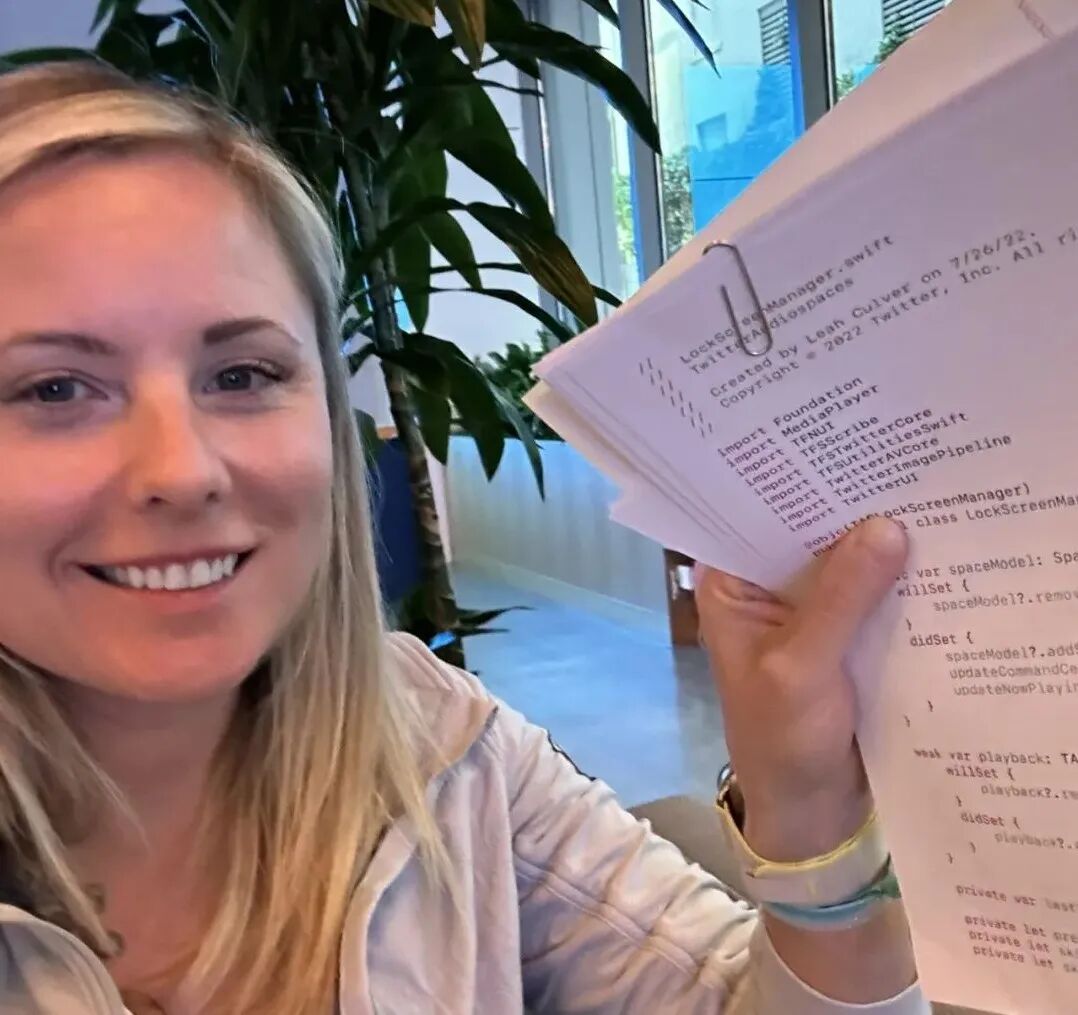 Twitter iOS 客户端员工、OAuth 作者之一 Leah Culver 展示自己打印的代码