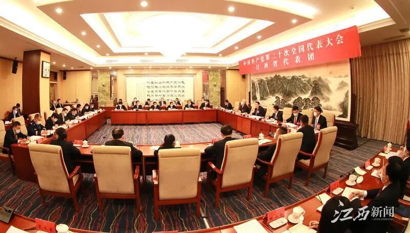 10月16日下午,党的二十大江西省代表团在代表住地举行第二次全体会议,认真学习、深刻领会党的二十大报告精神。大家一致认为,习近平总书记所作的党的二十大报告,主题鲜明、内涵丰富,博大精深、气势恢弘,通篇闪耀着马克思主义真理的光芒,通篇展示了以习近平同志为核心的党中央引领新时代中国特色社会主义的理论成果、实践成果、创新成果,承载着中华民族伟大复兴中国梦,贯穿着中国共产党人的强烈历史担当,既是政治宣言,又是行动纲领,必将激励全党全国各族人民为全面建设社会主义现代化国家、全面推进中华民族伟大复兴而不懈奋斗。