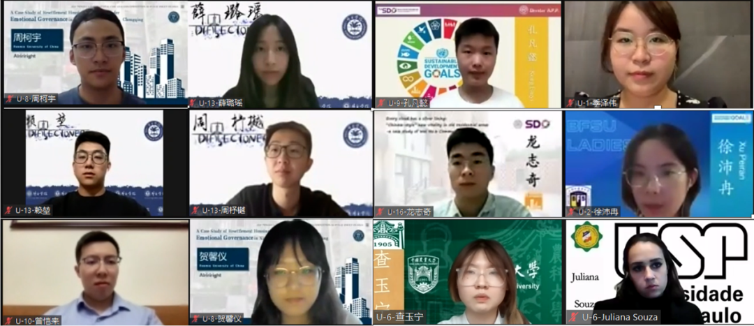 大赛自五月启动以来,吸引了来自中国、美国、巴西、日本、加拿大、意大利的48所院校54支团队共182人报名。参赛团队围绕17项联合国可持续发展目标进行选题,从公共政策专业角度思考可持续发展议题,开展实地调研、线上访谈并精心撰写案例分析报告。经过四个月的认真准备和两轮严格评选,共有16支本科生队伍和6支硕士生队伍脱颖而出、闯入决赛。