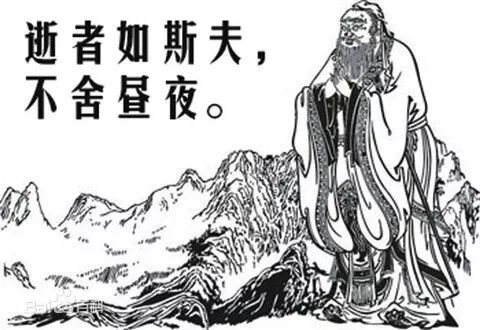 孔子看到河流的奔腾,感叹岁月时间的流逝。