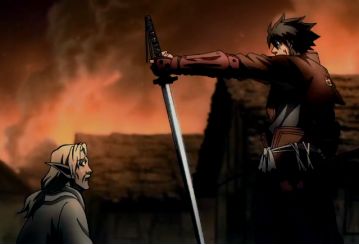 丰久将领头的骑士击倒后,将刀交给了精灵族村长,要村长为自己被杀的儿子复仇。