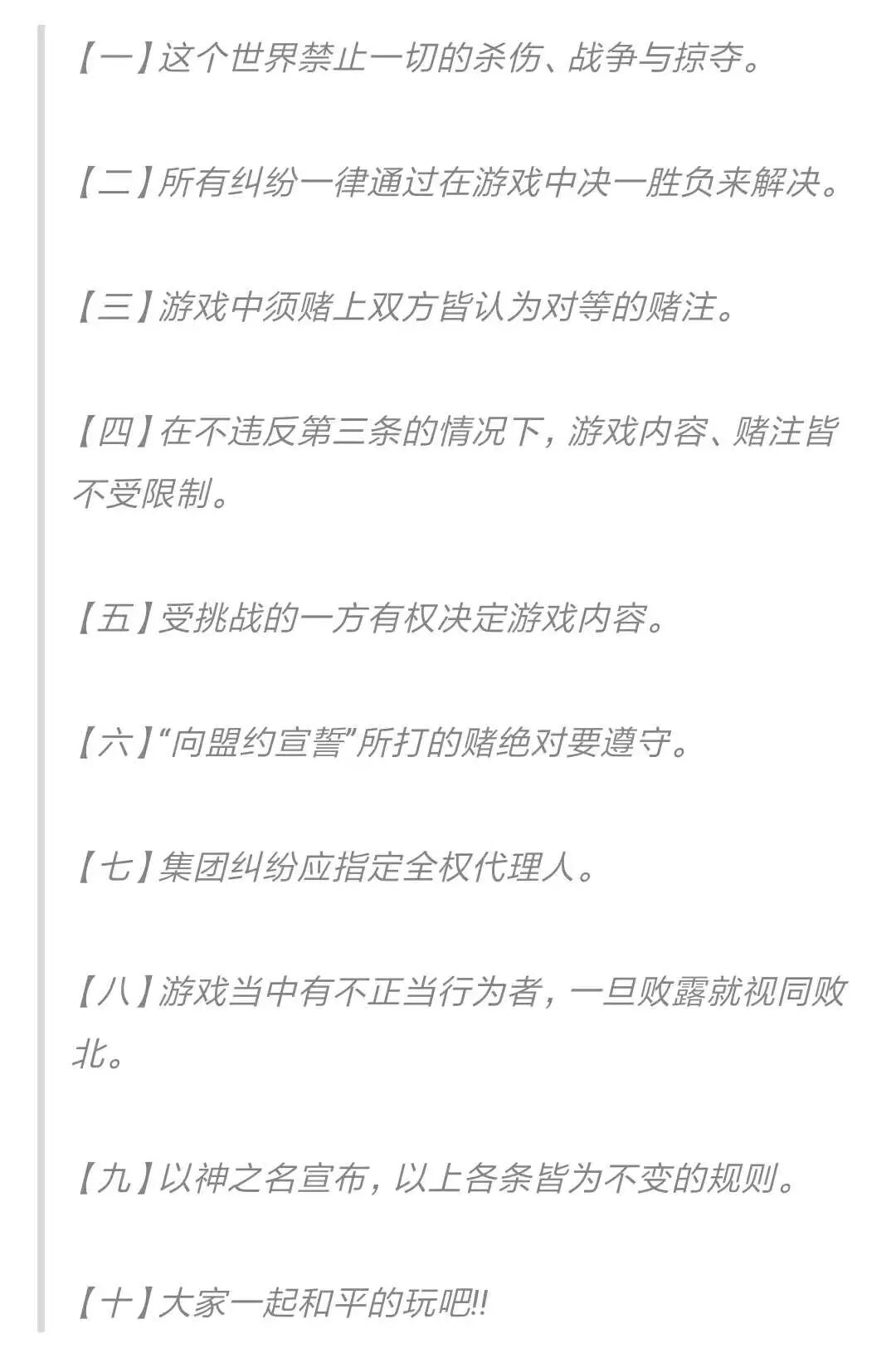 所有种族都不能使用暴力,只能通过游戏的胜负来决定利益划分。