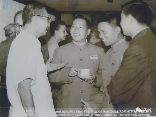 1976年9月,覃祥官(中)以中国代表团副代表的身份参加了在菲律宾首都马尼拉召开的世界卫生组织西太平洋区委员会第27届会议、世界卫生组织太平洋区基层卫生保健工作会议