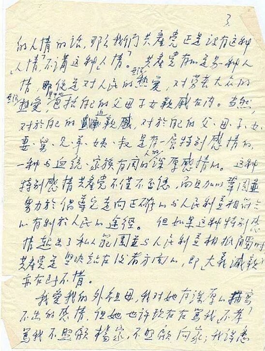 我爱我的外祖母,我对她有深厚的描写不出的感情,但她也许现在在骂我“不孝”,骂我不照顾杨家,不照顾向家,我得忍受这种骂,我决不能也决不愿违背原则做事。我本人是一部伟大机器的一个极普通平凡的小螺丝钉,同时也没有“权力”,没有“本钱”,更没有“志向”,来做这些扶助亲戚高升的事。至于父亲,他是这种做法最坚决的反对者,因为这种做法是与共产主义思想、毛泽东思想水火不相容的,是与人民大众的利益水火不相容的,是极不公平,极不合理的。