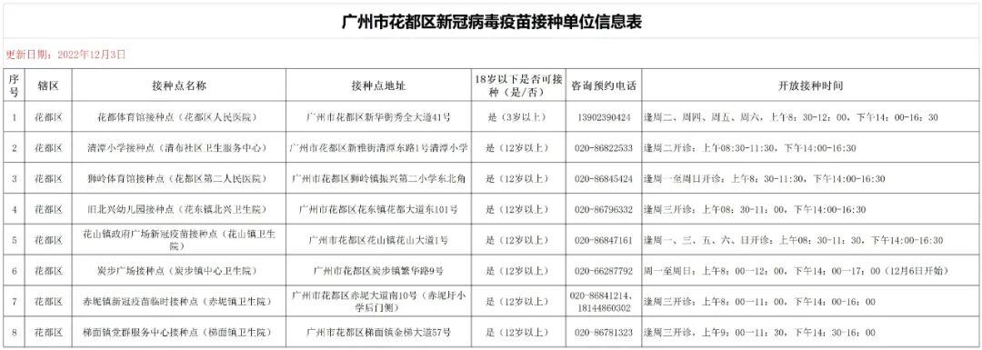 花都区新冠疫苗接种点汇总