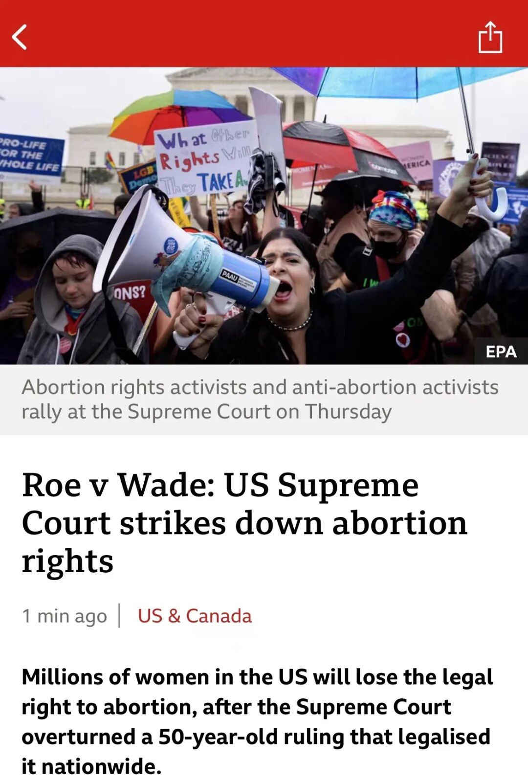 ①America’s Supreme Court overturned Roe v Wade, the landmark ruling from 1973 that protected the right to an abortion.