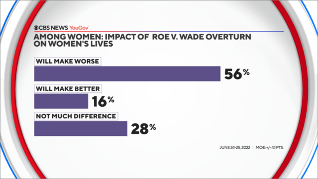 就此裁决对女性的影响,56%的人认为更糟糕,16%的人认为更美好,28%的人认为并无不同。