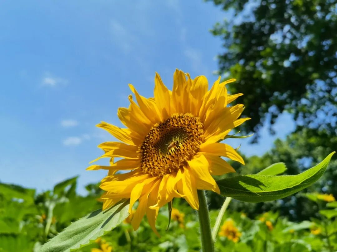 灿烂的向日葵,连接着湛蓝的天空,宛如一幅浓烈的油画,是最自然的绝美滤镜。
