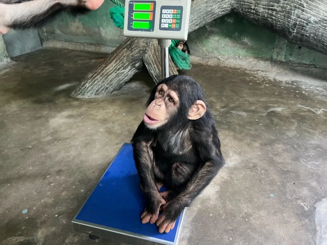 随着年龄的增长,和称重训练的不断强化,黑猩猩宝宝们不久也会像模范生“九妹”一样,自觉上秤监测体重。