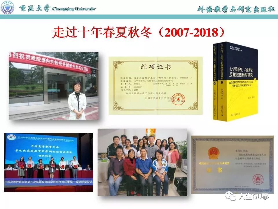这个项目断断续续做到2011年才提交结题报告,2012年根据五位评审专家的反馈修改结题报告,2013年结题,2014年出专著,2016年该专著获中国高等教育学会第九次高等教育科学研究优秀成果一等奖,2018年获重庆市第九次社会科学优秀成果三等奖(著作类)。但我真正骄傲的不是项目结题与专著,也不是获奖,而是当年深度参与了该项目研究的一批硕士研究生,现在有的已经是博士、副教授、硕士生导师,有的还在读博士,没有读博的,有的工作五年,连升三级。