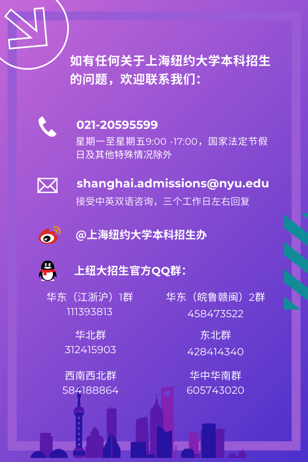 我们将在全国各地举办城市宣讲会以及校园宣讲会,与学生及家长面对面交流,从而帮助大家更加全面、深入地了解上海纽约大学。