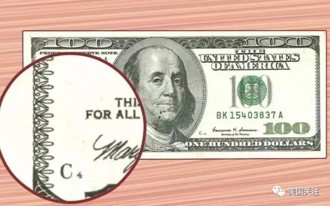 不用纠结缩微印刷的位置。由于缩微印刷技术难以复制,因此绝大多数的假钞都倾向忽略这一细节。