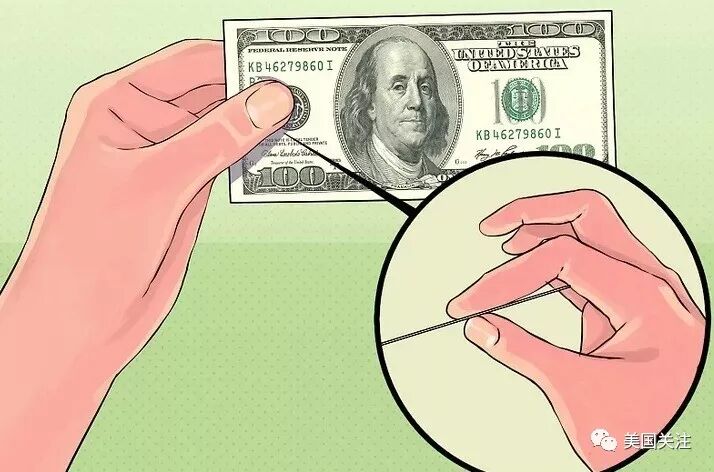 观察有否渗墨。由于真假美元的制作工艺不同,假钞的边界有时可能会出现渗墨现象。